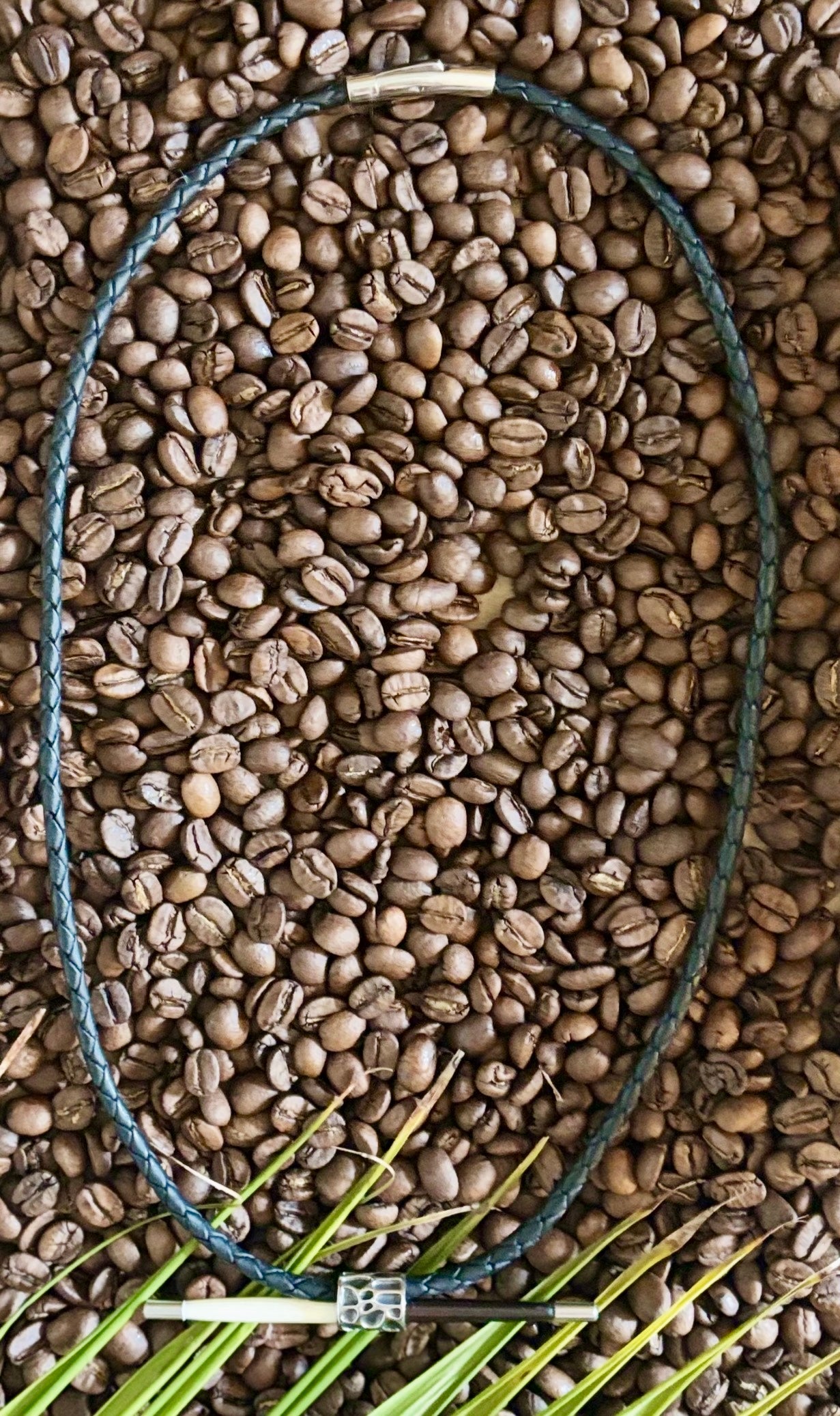 A bold statement of strength and balance: black braided leather cord secured with a sleek stainless steel bayonet clasp, accented by an antique paracord bead and a striking porcupine quill—half white, half dark brown—finished with polished stainless steel end caps. Designed for men and women alike, this piece blends rugged craftsmanship with modern elegance.